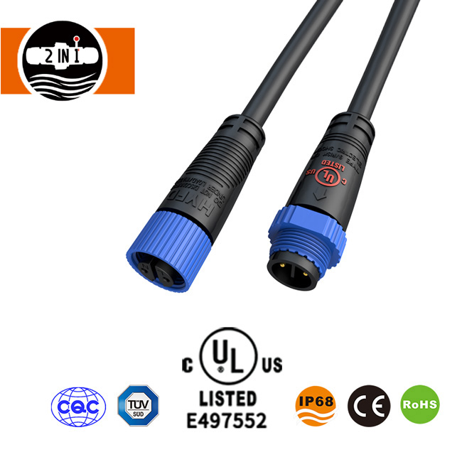 UL M15 நீர்ப்புகா ஆண் பெண் இணைப்பான், 2 துருவம், 3 துருவம் UL பட்டியலிடப்பட்ட நீர்ப்புகா இணைப்பு கேபிளுடன் வடிவமைக்கப்பட்டுள்ளது, இது வெளிப்புற LED விளக்குகளுக்கு பரவலாகப் பயன்படுத்தப்படுகிறது. கேபிள் வகை மற்றும் கேபிள் நீளம் தனிப்பயனாக்கலாம்.